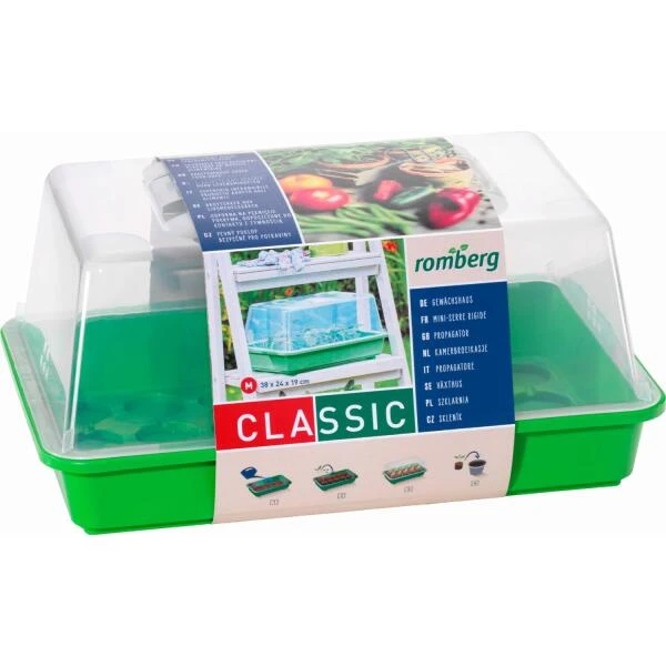 Deze broeikas van Romberg zorgt voor een optimaal klimaat voor het kweken van plantjes. Ideaal om zelf kruiden, groenten en bloemen te telen. De bodemplaat is voorzien van gootjes en uitsparingen voor een goede waterverdeling. In de ronde uitsparingen kan je kokostabletten leggen maar je kan de kweekkas ook gebruiken in combinatie met kweekpotjes of vullen met kweekgrond.