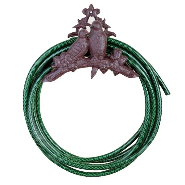 Houder in gietijzer met vogeldecoratie voor het opbergen van de water- of tuinslang. Mooie decoratieve tuinslanghouder.