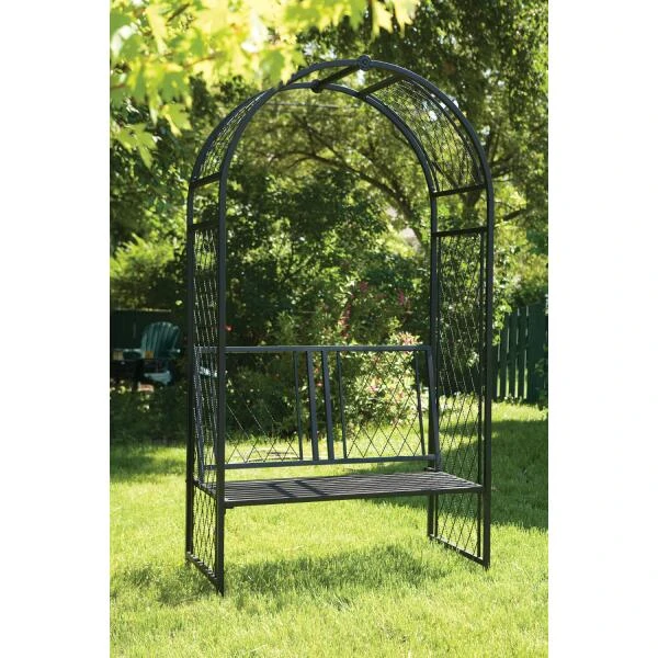 De rozenboog met tweezit staat prachtig in elke tuin, groot of klein. Dankzij de zitbank zorgt deze rozenboog voor een leuke en ontspannende plek in de tuin. De rozenboog is vervaardigd uit een zwart gecoat stalen frame voor klimplanten en heeft een strakke moderne afwerking.