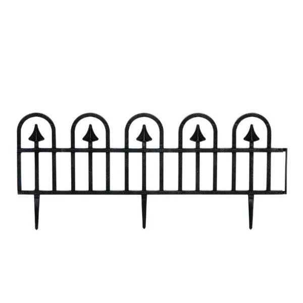 Een strakke zwarte kunststof tuinafboording bestaande uit vijf onderdelen die je makkelijk en snel in elkaar kan schuiven. Elk onderdeel heeft een afmeting van ca. 78 x 24 cm bovengronds en gaat 10 cm de grond in, zo staat deze afboording stevig vast. Door de gekorrelde afwerking van hekje lijkt het op afstand bijna antiek metaal te zijn.
