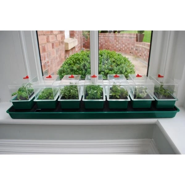 Kweek bloemen, groenten of kruiden in afzonderlijke kasjes. Deze 7-delige kweekkas is een complete kwekerij voor op de vensterbank.Voorkomt verspilling. Het unieke formaat van de mini kweekkasjes voorkomt de productie van teveel aan zaailingen. De kans op ziektes is ook kleiner. De mini kweekkasjes bieden een geïsoleerd kweekklimaat waardoor de kans op besmetting tussen de verschillende plantensoorten/kasjes drastisch wordt verkleind.