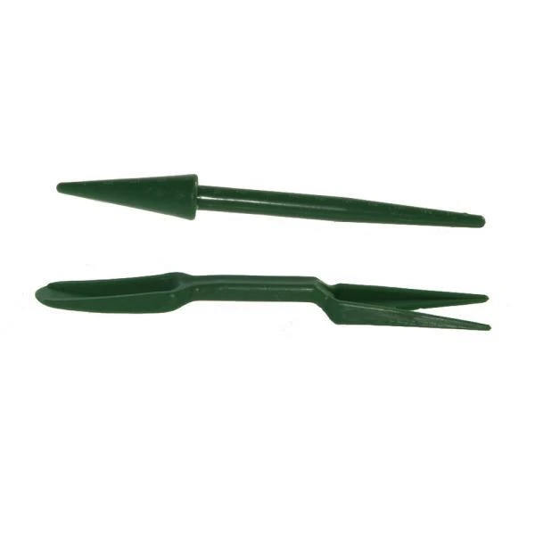Voor het planten van zaailingen. De pootstok en spatel zijn handig bij het verspenen, bij het uitplanten, inpotten en bij het steken van stekken. De verspeen is gemaakt uit harde kunststof en op de pootstok staan afmetingen in inches zodat je perfect weet hoe diep jouw stekgaatjes of zaaigaten zijn alvorens er het plantje in te steken.